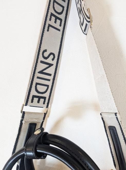 SNIDELの定番人気のキャンパスバッグ型の本体をふんわりボア素材で上品にお作りしました。付属のショルダーストラップには、華やかなSNIDELロゴ入りのウェビングストラップを採用。