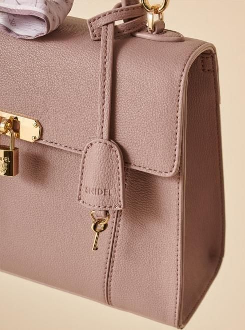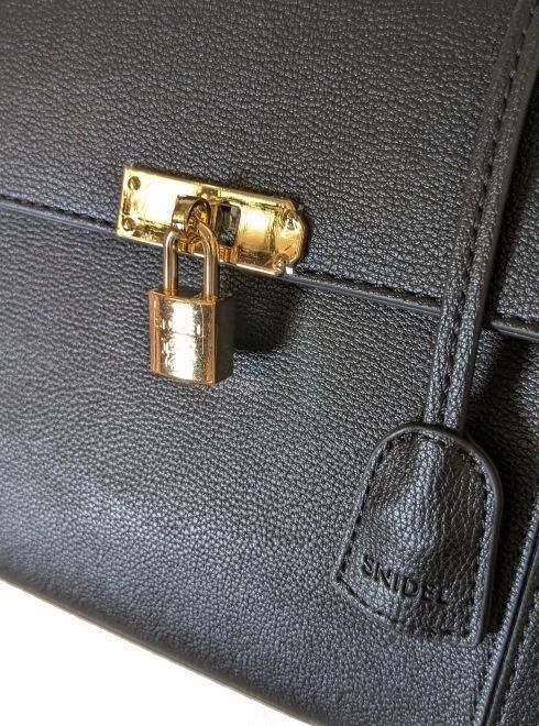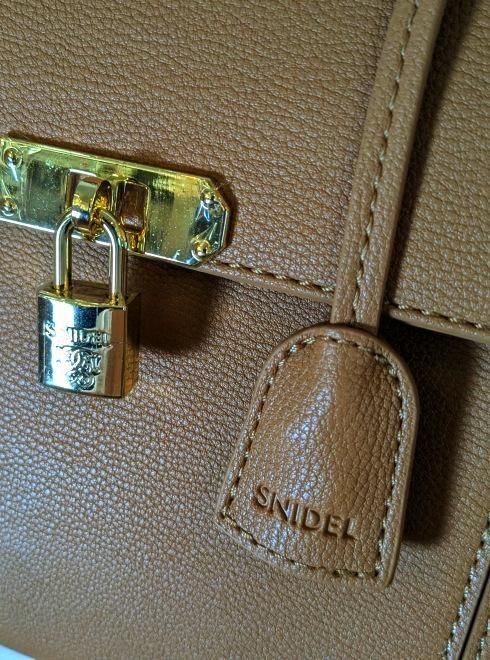 クラシカルなロールカバーデザインで、SNIDELロゴ入りの飾りゴールドパッドロックデザインも加わってエレガントな雰囲気に。パッドロックは飾りで、実際にはフラップ裏側のマグネット金具で開封するタイプなので楽ちんです。