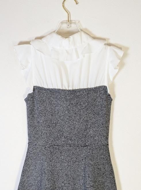 まだ暑い時期からも着られる、クラシカルなディティールを詰め込んだノースリワンピースです。ドッキングしたボディ部分のニットは滑らかで肌あたりの良い素材感、エコレーヨン使用しており、フィット感がありながら肉感はカバー。