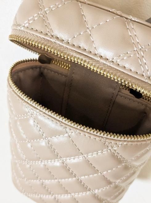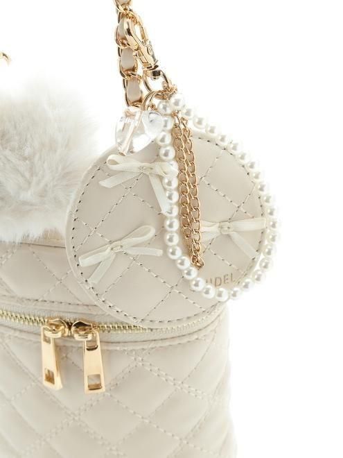 アイコニックな筒形ミニサイズのキルティングショルダーミニバッグに、ハートビーズとパール調チェーン付きの上品ミラーとイヤホンなどが入れられるミニポーチがセットになったゴージャスで実用的なバッグがお目見え。