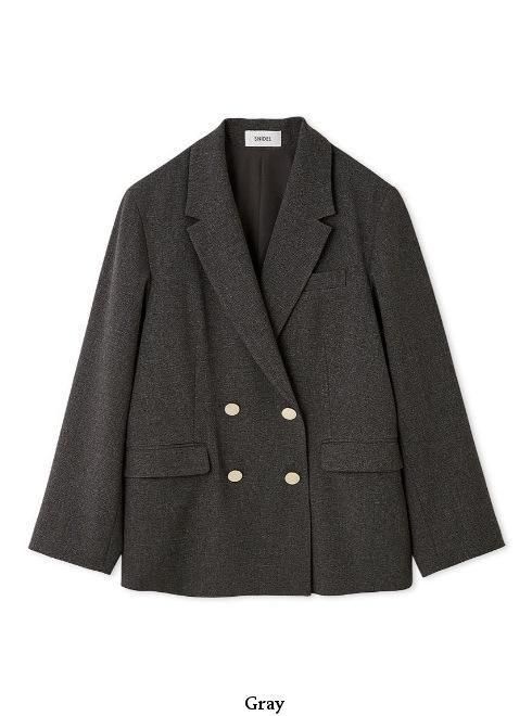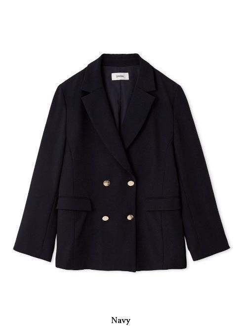 洗練されたデザインで、ワンピースやスカートスタイルにも合わせやすく、羽織りとしても活躍します。ダブルボタンは、艶感のあるメタルボタンでリュクスに仕上げました。
