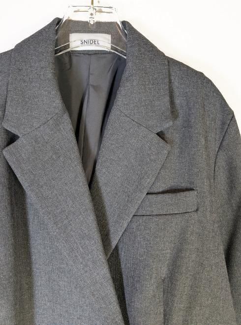 SNIDELで定番人気のベーシックなゴールドボタンジャケットは、今季はややゆったりとした身頃で、ざっくりと羽織れるようにデザインしました。襟は少しシャープになるようにデザインして、エレガントな印象に。