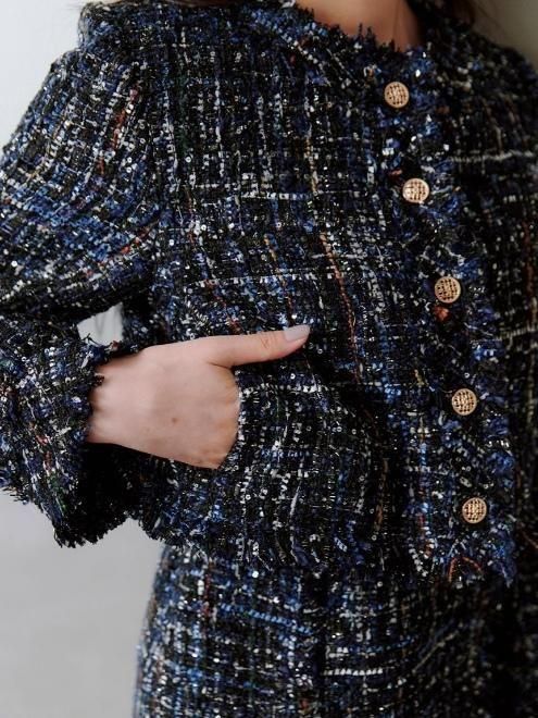 スパンコールやラメ糸などを織り交ぜ、カラー展開毎に異なる表情でお作りしたツイード生地を使用したSNIDELらしい人気ジャケットです。