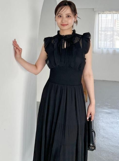 Sustainableシアープリーツウエストワンピース 25秋冬【SWFO254287】マキシワンピース