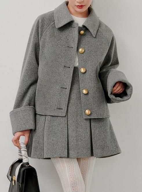 ファー襟付きツイードショートコート 25秋冬.【CWFC255007】ウールコート -