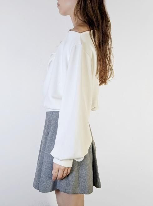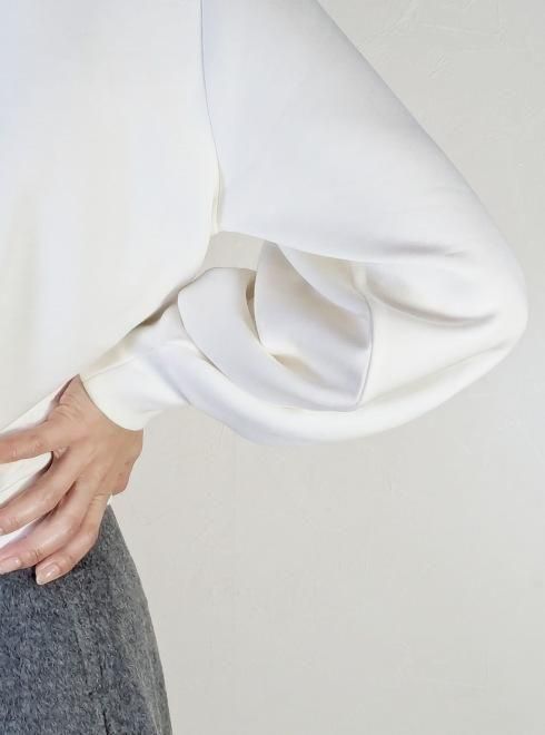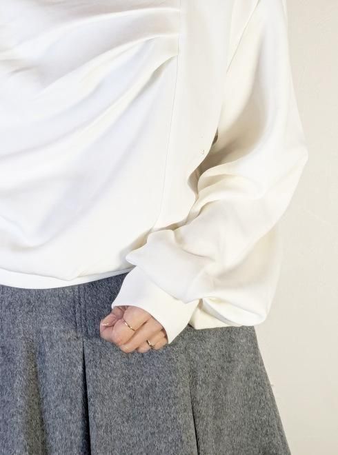 袖口もタックを入れてふんわりと仕上げ、フェミニンに仕上げました。表情豊かなファブリックイレヘムフレアスカート(SWFS254268)合わせがおすすめです。