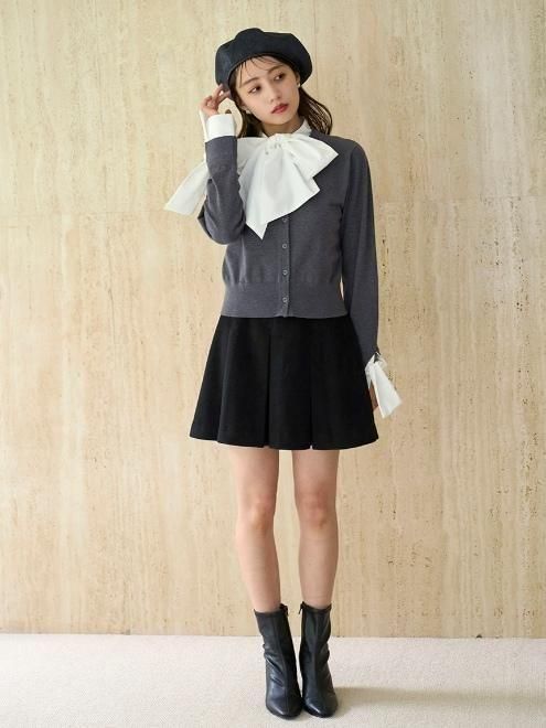 ■素材:本体:ナイロン35%、ポリエステル24%、アクリル22%、レーヨン15%、ウール4%/別布:【袖・リボン部分】【GRY】ポリエステル82%、綿18%/【BLK】綿100%/【NVY】ポリエステル82%、綿18%