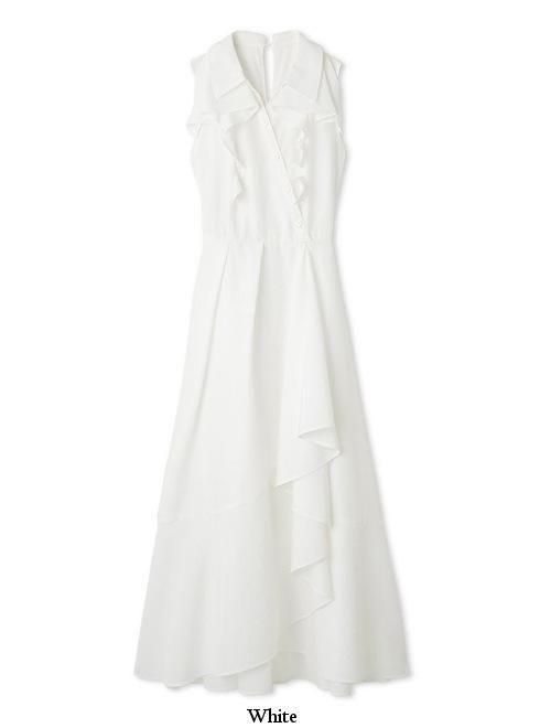胸元にあしらった立体的なフリルが目を惹く、華やかなシャツワンピース。浅めのカシュクールデザインがデコルテをすっきりと見せ、上品な女性らしさを引き立てます。付属のインナーキャミワンピースで透け感を気にせず一枚で着用できるのも嬉しいポイント。
