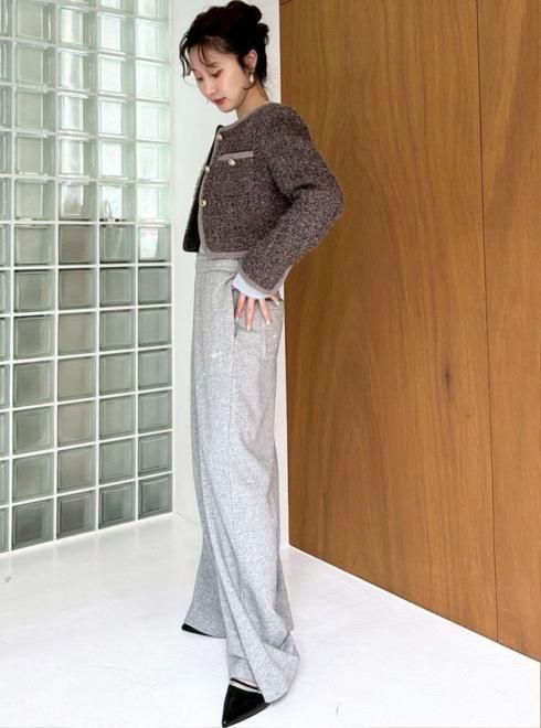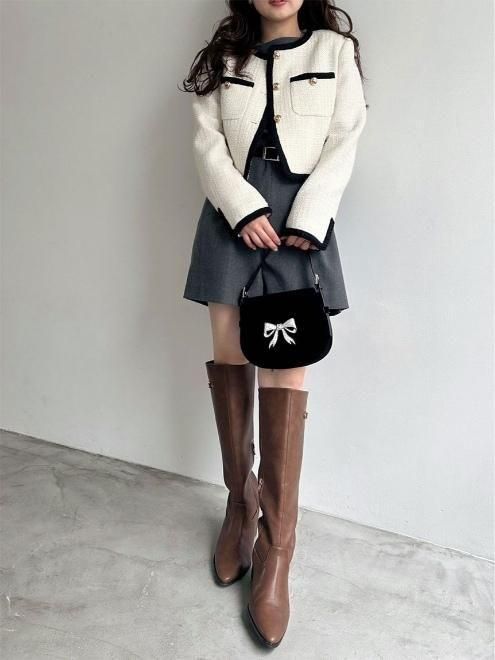 デイリーに使いやすく、ワードローブに一着は揃えておきたい万能アイテム。同素材のツイードミニスカート(LWFS254056)とのセットアップスタイルもおすすめです。