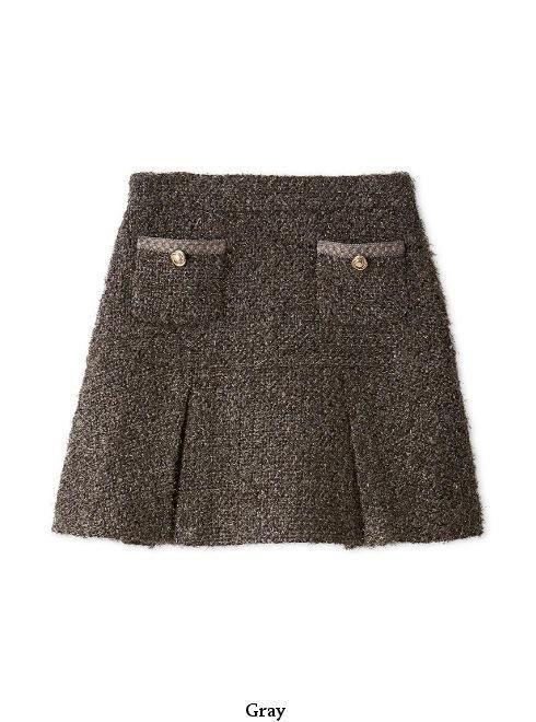 ポケットには立体的なブレードとゴールドボタンをあしらい、細部まで品のある表情に。同素材のツイードジャケット(LWFJ254055)とのセットアップもおすすめです。