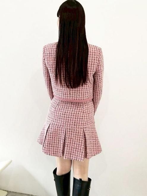 定番のツイードスカートが今季らしくアップデートして登場。気になる腰まわりをカバーするフィット&フレアのシルエットはそのままに、切り替え部分にタックを施すことで縦ラインを強調し、よりすっきりとした印象に仕上げました。歩くたびに広がる柔らかなフレアがフェミニンなムードを演出。