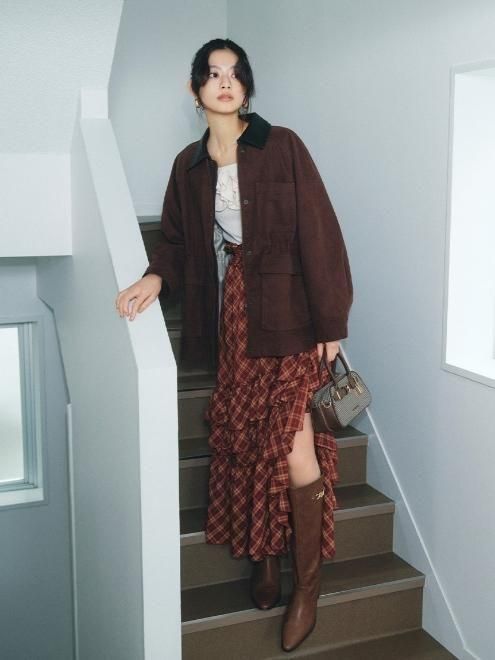 チェックとレースのバリエーションは、2種類の異素材を使用し、奥行きのあるレイヤードデザインに仕上げました。着るだけで印象的なスタイルを完成させてくれる、主役級の一着です。