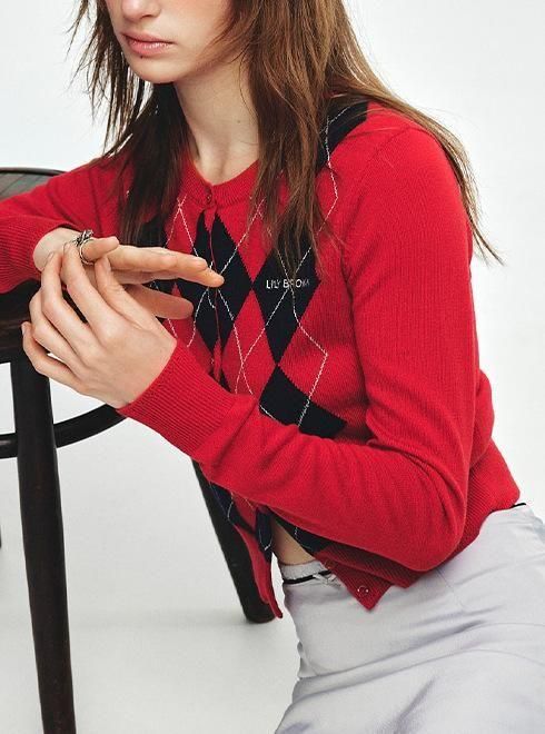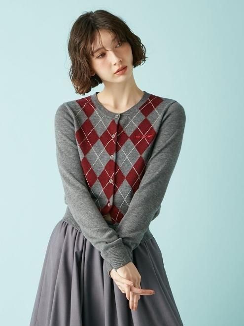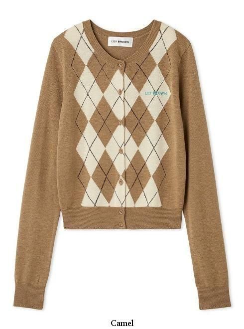 ロゴ刺繍アーガイルカーディガン 25秋冬【LWND254070】カーディガン