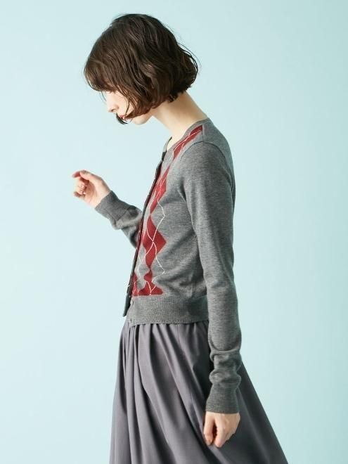 クラシカルなアーガイル柄を、ラメのラインでアップデートしたカーディガン。さらりとしたウール混素材で、季節を問わず着用しやすい一枚です。