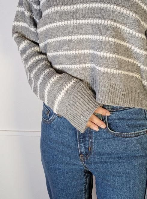 広めに開いたネックラインはデコルテをすっきりと見せ、抜け感のある着こなしを叶えます。デニムでラフにまとめても、きれいめボトムでクラシカルに仕上げるのもおすすめです。