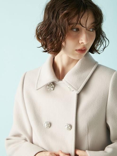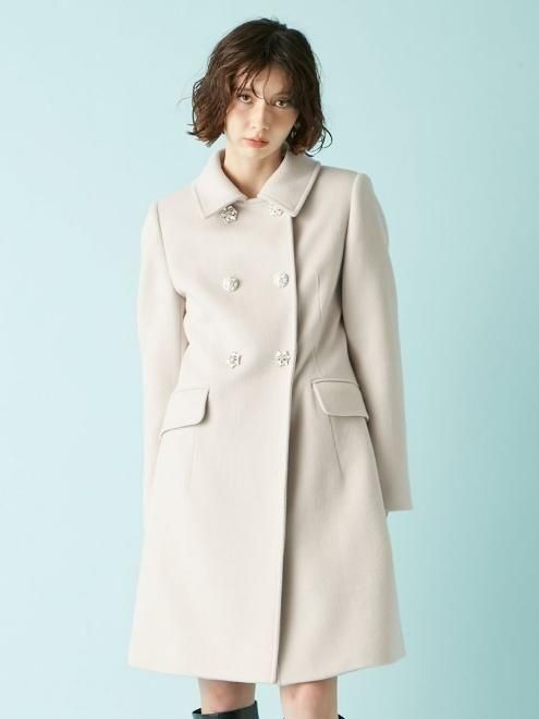 ダブルビジューミディコート 25秋冬【LWFC255801】ウールコート