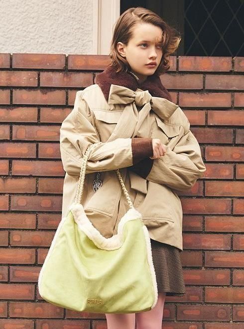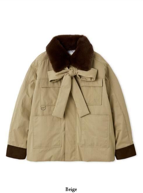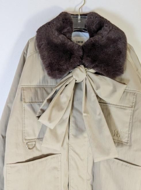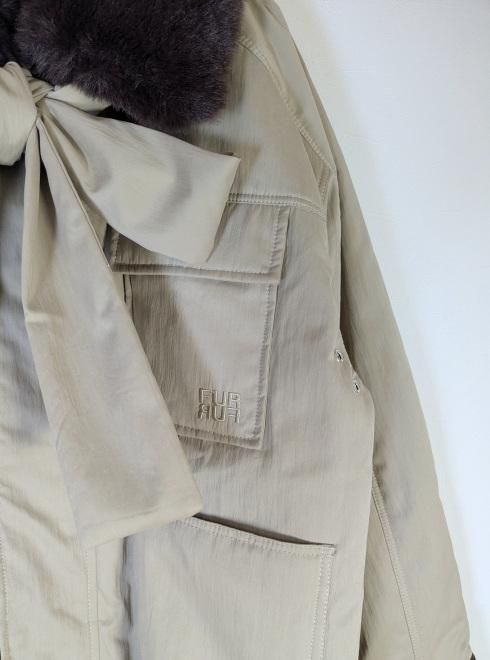 トレンドのワークブルゾンをFURFURらしく取り外せるボウタイ付きで作成。ファー襟は取り外し可能。