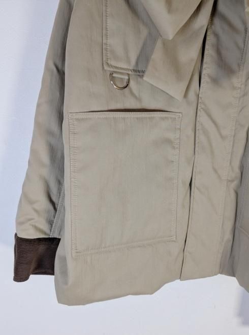 ファー襟を取るとコーデュロイ襟になるので、様々な雰囲気で着用できます。身頃は薄手の中綿入りなので暖かさもあり、秋から冬にかけて活躍。