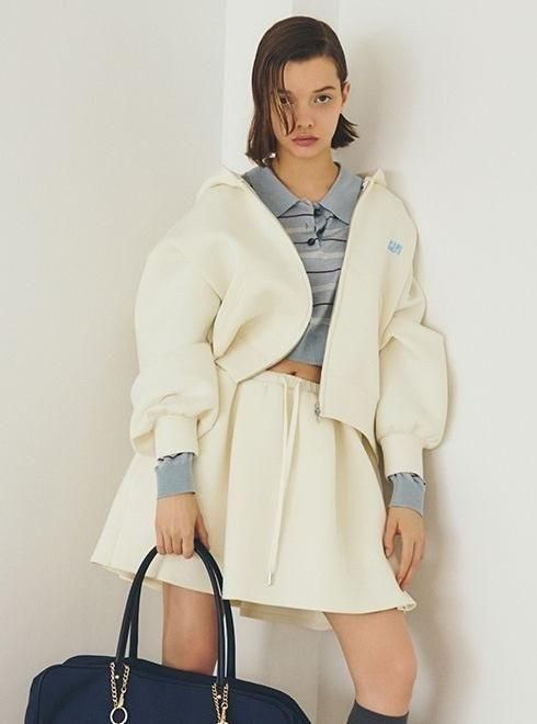 様々なアイテムと合わせやすく、フェミニンな着こなしが叶うアイテム。同素材のフーディーとセットアップでの着用もお勧めです。