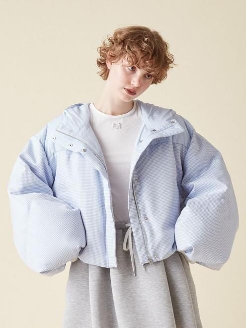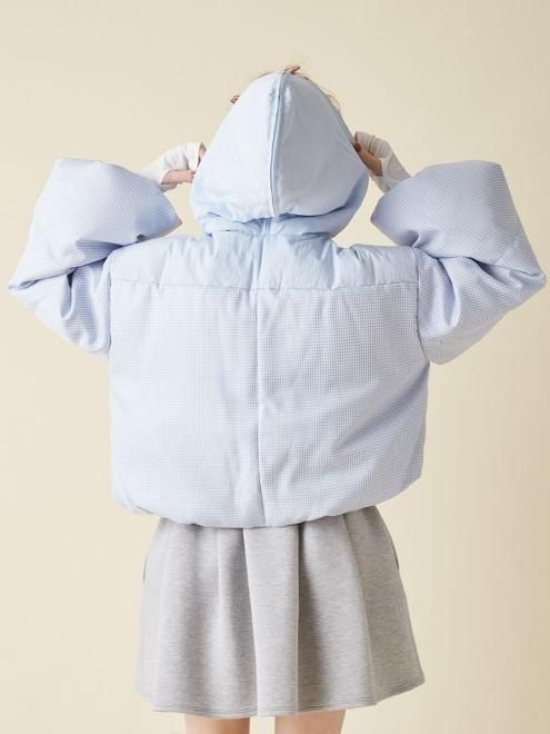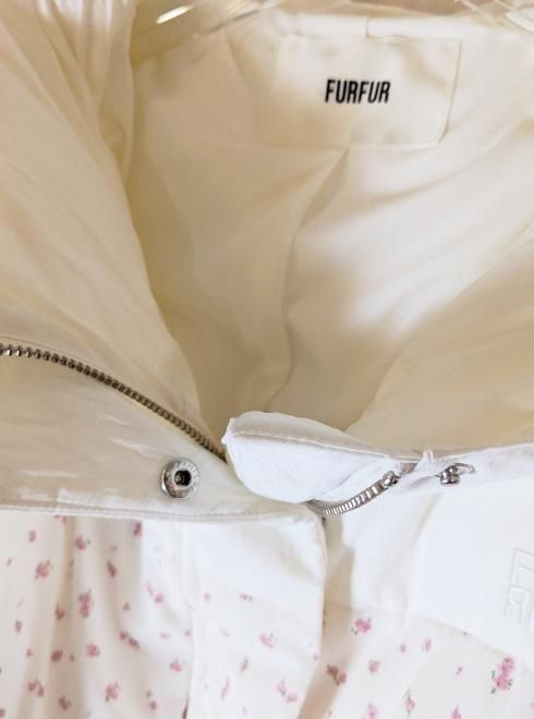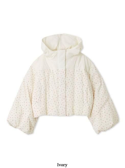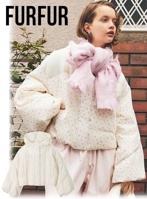 FURFURらしい愛らしい柄使いが目を引くダウンジャケット。ふんわりとしたボリュームシルエットのお袖がデザインのポイントです。