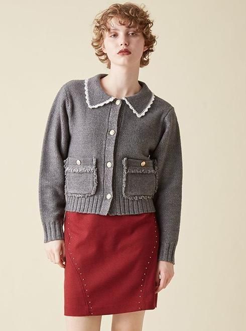 ツイードジャケットのエレガンスをニットで表現したカーディガン。フリンジ付きの小さなポケットがクラシカルな雰囲気を演出し、洗練された印象に。