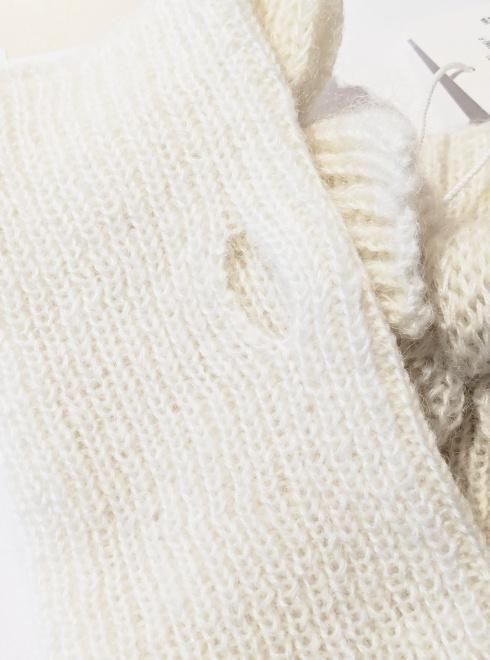 ゆるりと編み込んだ糸がふんわり手先を包み込んでくれるデザインのゆび開き手袋です〇