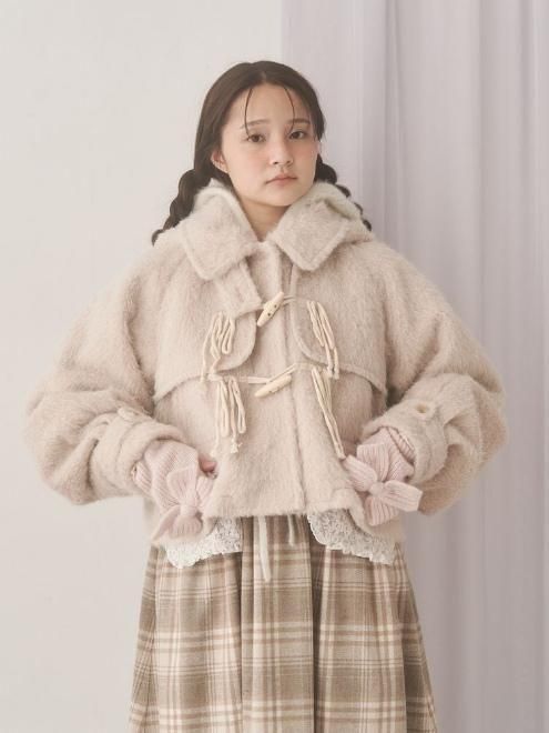 ファー襟付きツイードショートコート 25秋冬.【CWFC255007】ウールコート -