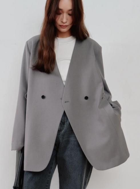 double button no collar jacket