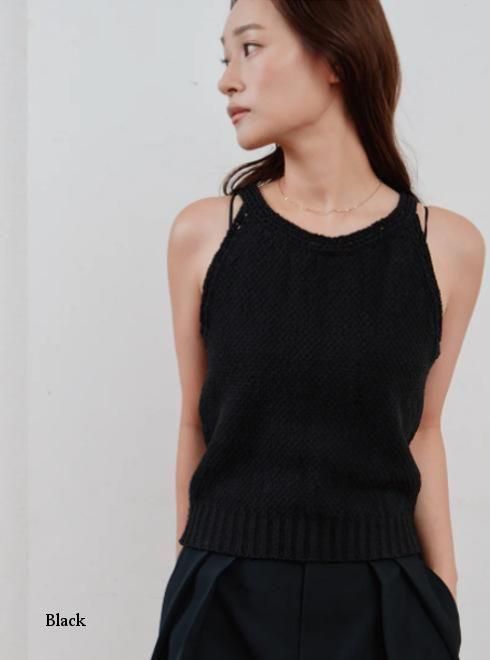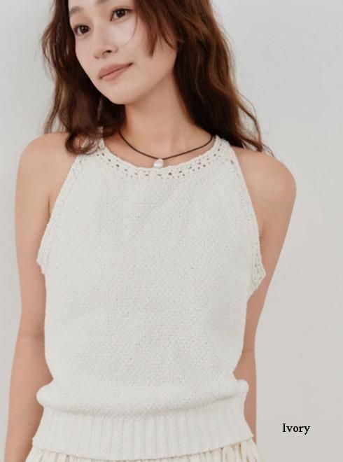 繊細な編み模様が印象的なサマーニットタンクトップ。