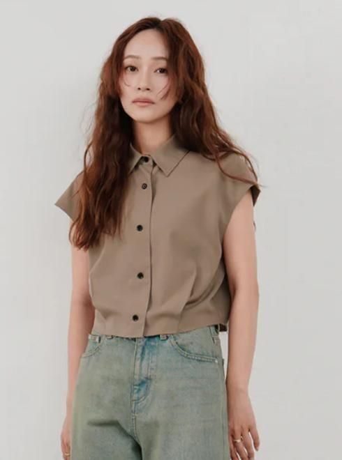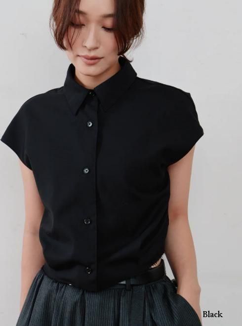 きれいめな印象で着られる、ノースリーブのシャツブラウス。