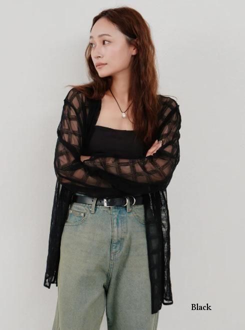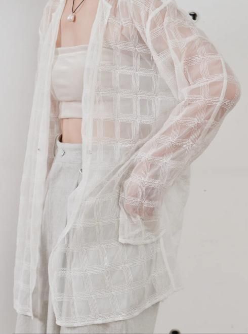embroidery check sheer jacket