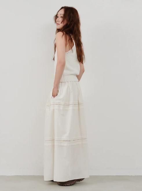 甘さを抑えたレース使いで、大人の女性にも取り入れやすいマキシスカート。