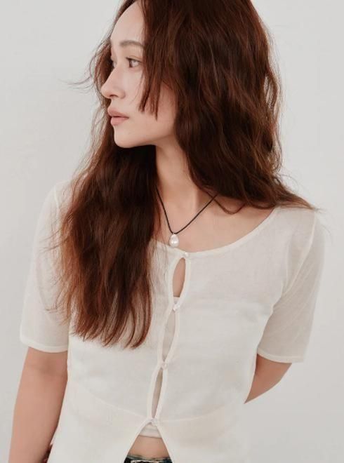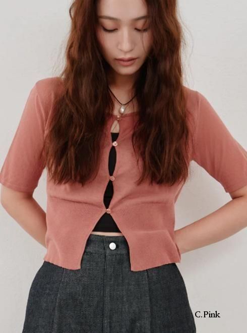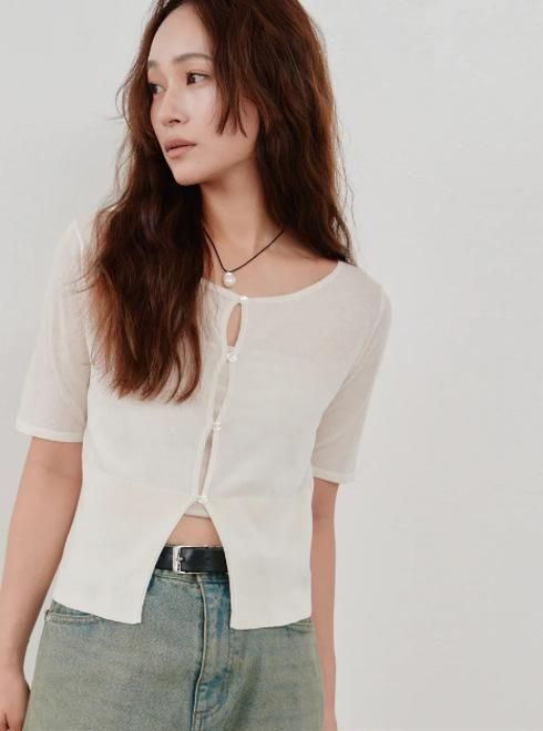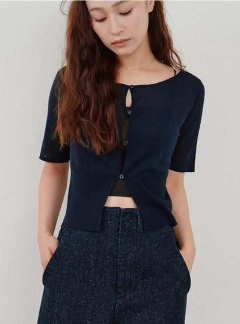 シンプルながら存在感のある、半袖シアーカーディガン。