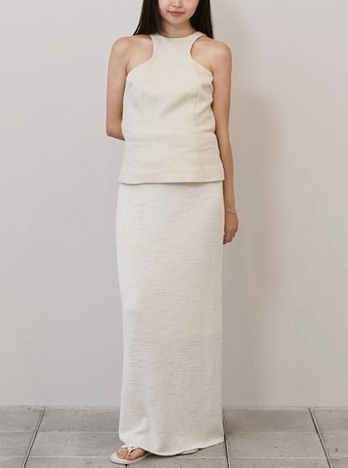 アメリカンスリーブのデザインで肩まわりをすっきり見せ、同じ生地を使用したBoyfriend Linen Jacketと合わせたセットアップスタイルもおすすめです。