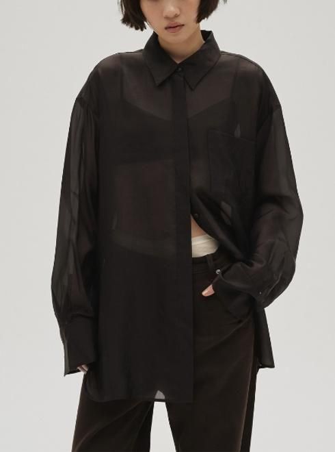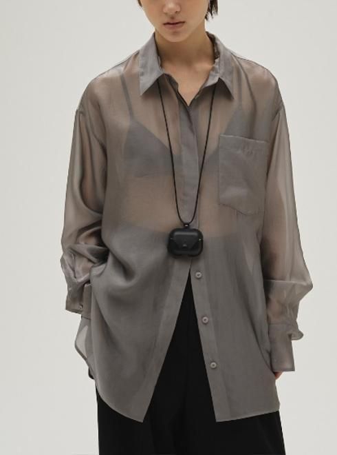 ほんのり透け感のある生地を使用したシャンブレーシャツ。落ち感のあるシルキーな風合いが女性らしい印象を引き立てます。