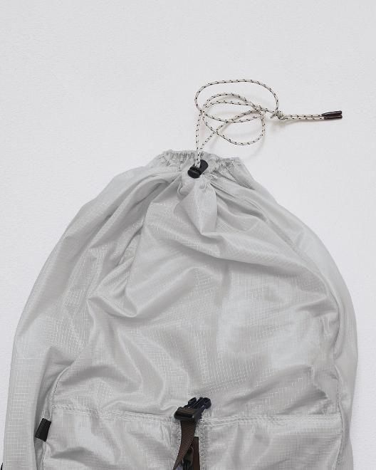 シアー感のあるリップストップ生地を使用したバックパック。軽やかな素材感に撥水加工を施し、デイリーに活躍します。内側のポケットに折りたたんで収納できるコンパクト仕様。
