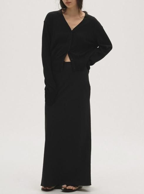 ペンシルシルエットが女性らしいラインを引き立て、シンプルながらもさりげない抜け感をプラス。同素材のUneck Washer Topsと合わせたセットアップスタイルもおすすめです。