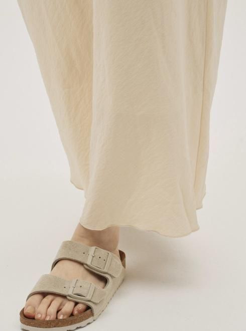 軽やかなタイプライター生地を使用したスカート。艶やかでしなやかなハリ感と、ドライでさらりとした風合いが心地よく、着心地も快適です。