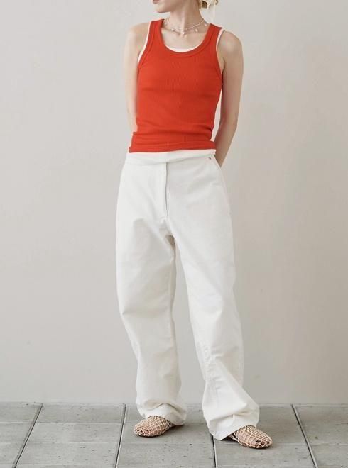 国内の生地を使用したリブタンクトップ。脇に縫い目のないシームレス仕様で、心地よく身体に馴染むフィット感が魅力です。ほどよく開いたネックラインはジャケットやシャツのインナーにも合わせやすく、シーズンムードたっぷりなカラー展開がスタイリングのアクセントになり、デイリーに活躍します。