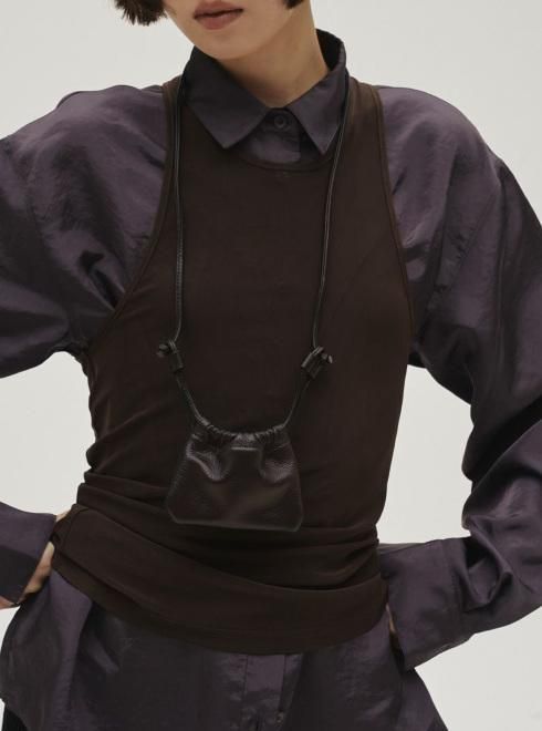 上質なレザーを使用したコンパクトパース。華奢なストラップとミニマルなデザインが、シンプルな装いにさりげないアクセントをプラス。リップや鍵などの小物はもちろん、カードや小銭も収まる実用的なサイズ感で、ミニ財布としても活躍します。
