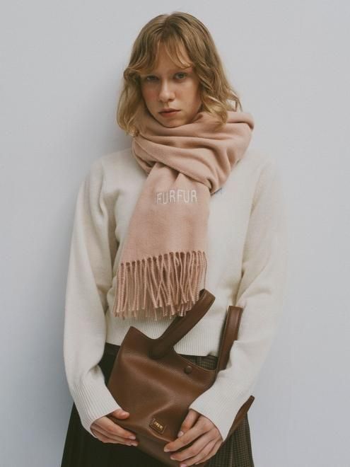 FURFURのロゴを刺繍した、シンプルで使いやすいストールです。カシミヤを彷彿とさせる上質な触り心地で、冬にピッタリなアイテムになっています。