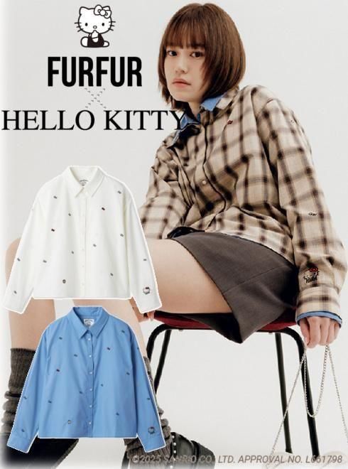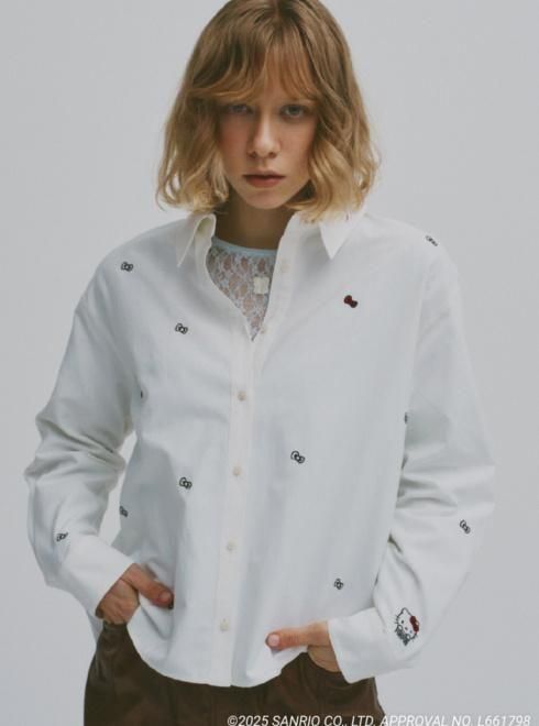 FURFUR (ファーファー)HELLO KITTYリボン刺繍シャツ 25秋冬.【RWFT261040】シャツ・ブラウス 【KITTY】