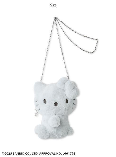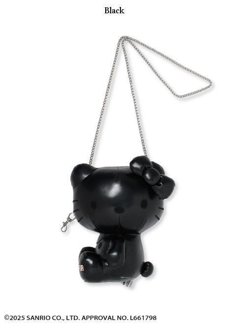 ハローキティとのコラボレーション。愛らしいハローキティのぬいぐるみをそのままバッグにデザインしました。取り外し可能なショルダーチェーンとは別にナスカンを付けているので、大きいチャームとしてもお使いいただけます。後頭部にリップやイヤホンなど収納できるスペースがあります。