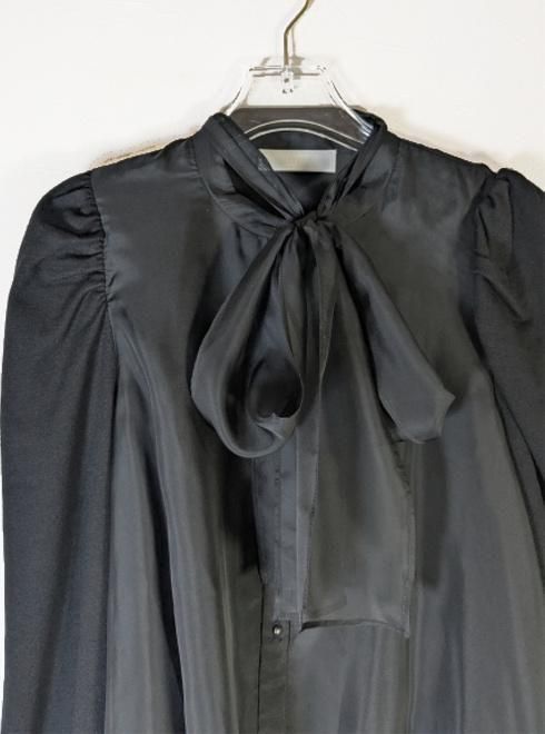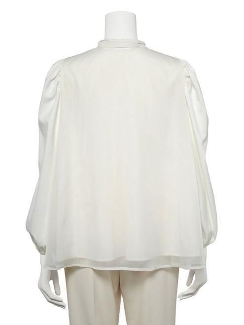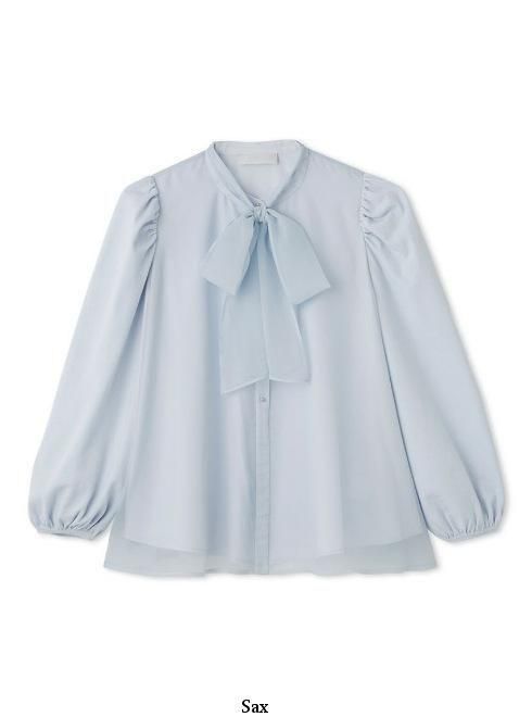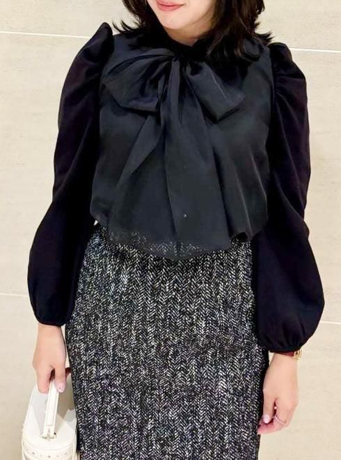 身頃と袖で異なる素材をドッキングしたフレアシルエットのブラウス。