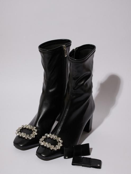 ビジュー&リボンクリップ付きストレッチブーツ