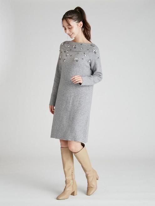 ペタルビジューニットワンピース