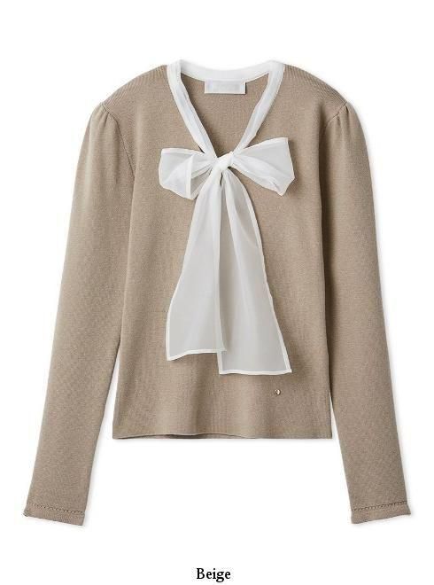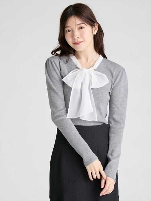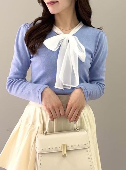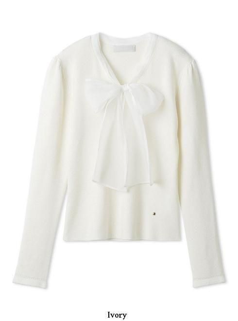 シルクブレンドボウタイニットプルオーバー 25秋冬.【CWNT255078】ニットトップス