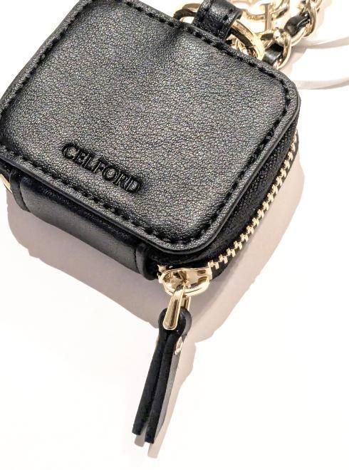 ササマチ付のファスナー仕様で口がしっかり開くのでAirpods Proなどの無線イヤホンや鍵、アクセサリーやリップも収納できるサイズ感。