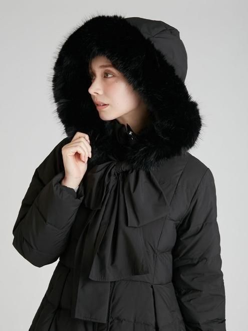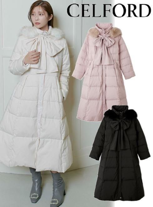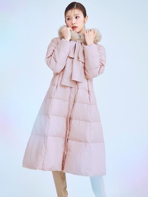 フードリボンロングダウンコート 25秋冬.予約【CWFC255055】ダウン 入荷予定 : 12月上旬〜