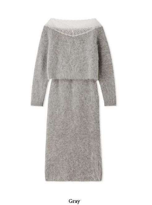 ■素材:トップス:アルパカ55%、アクリル24%、ナイロン19%、ポリウレタン2%/レース部分:ポリエステル100%/スカート:アルパカ55%、アクリル24%、ナイロン19%、ポリウレタン2%/裏地:ポリエステル100%